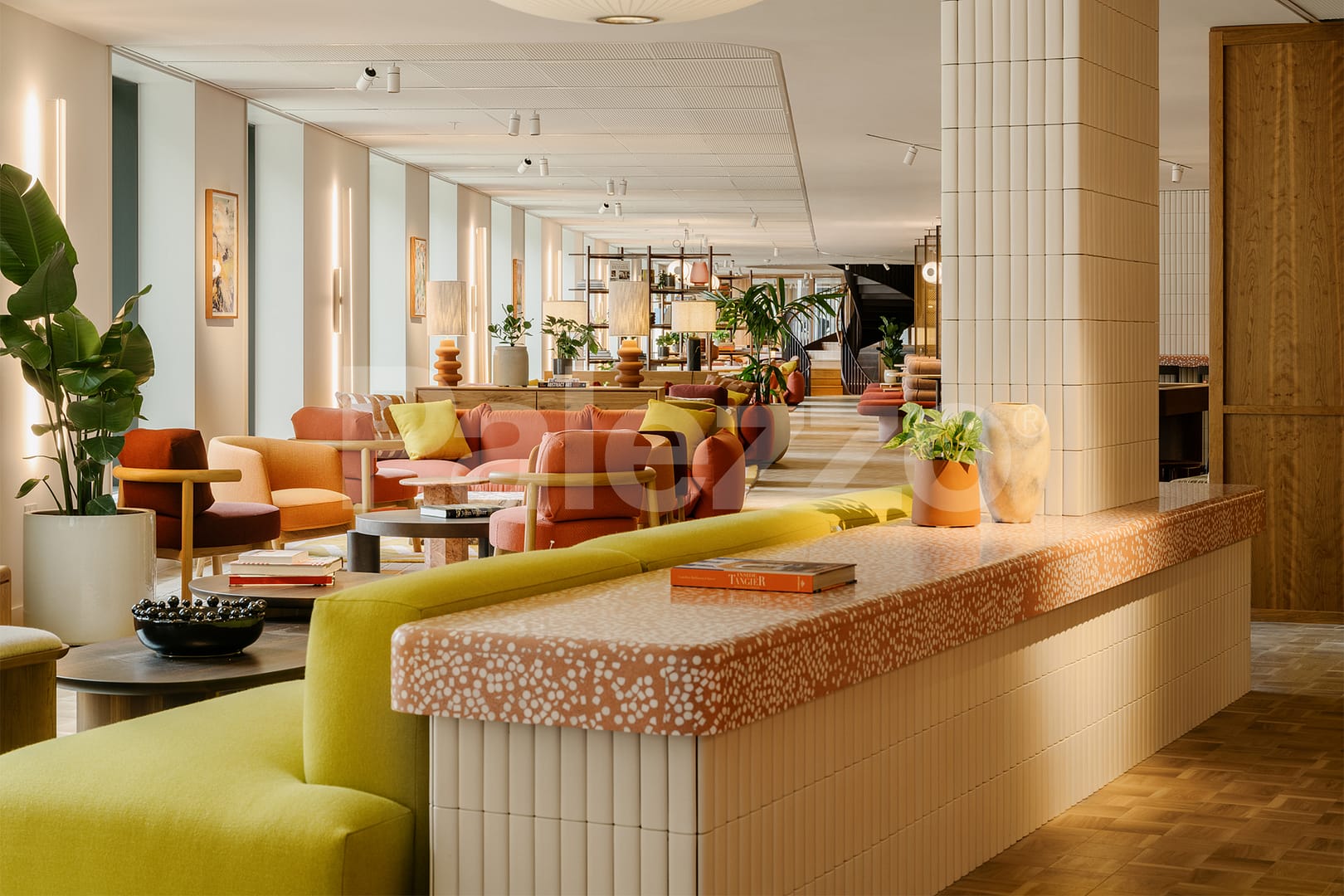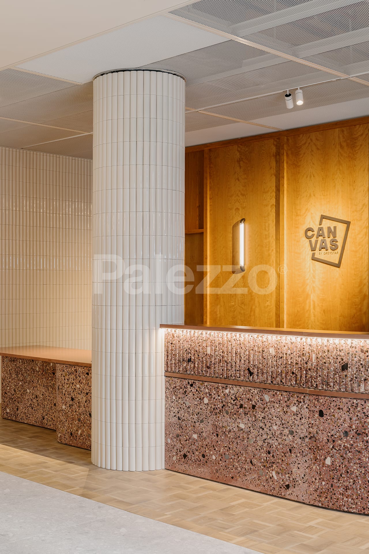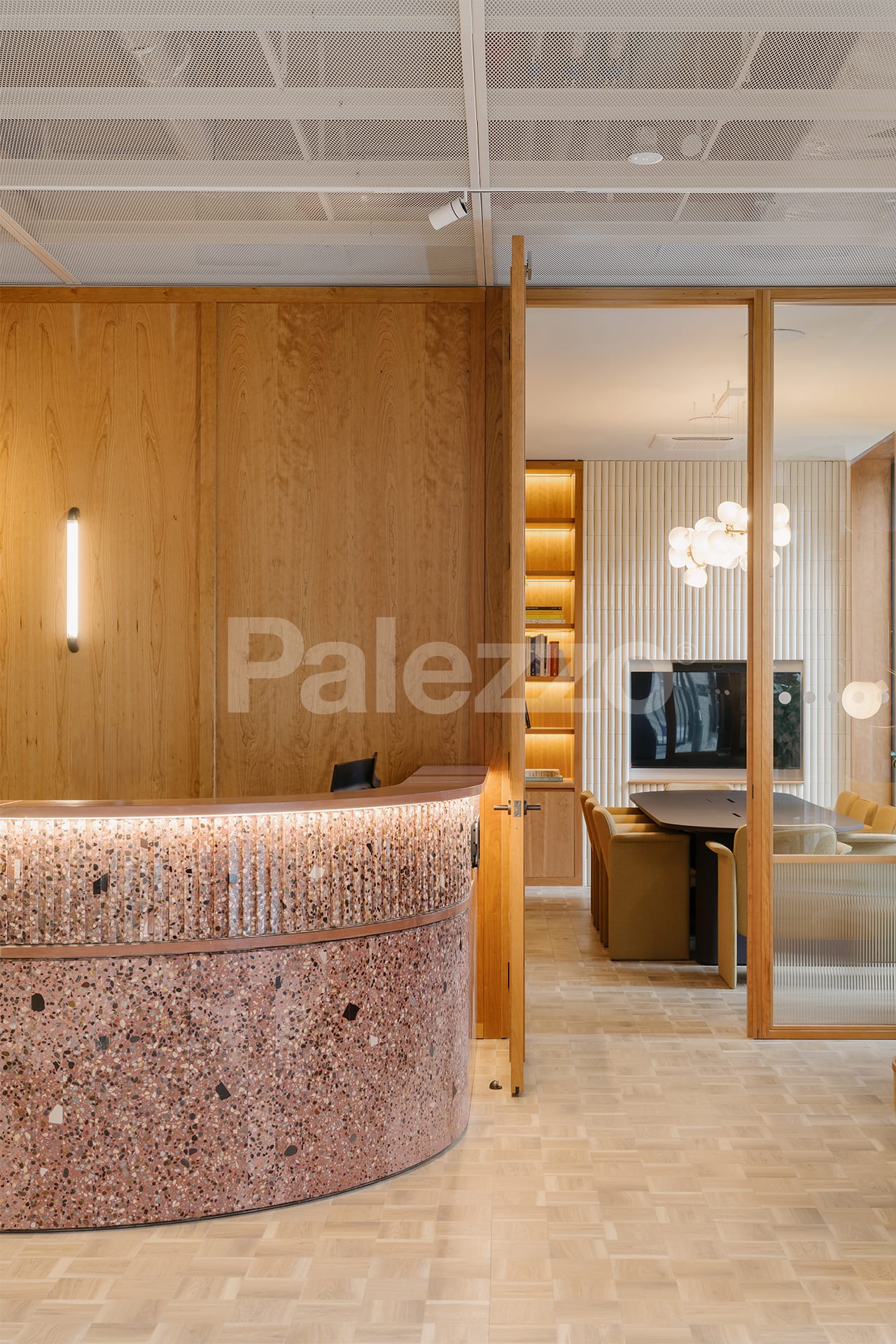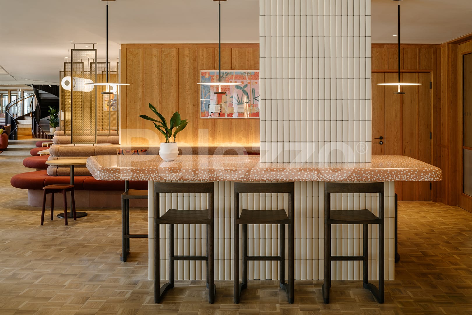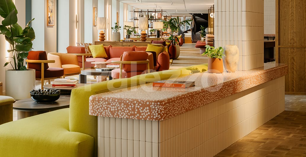 In this modern office project in London, Palezzo’s terrazzo counter and table designs lend the space a unique character. Combining aesthetics and functionality, the terrazzo surfaces add a warm touch to the contemporary office atmosphere while reflecting the brand’s sustainable and innovative approach.